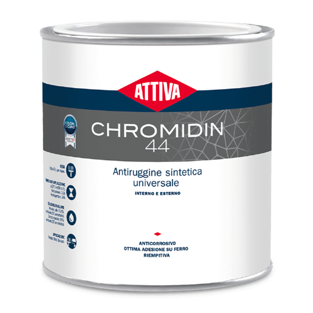 Il supporto deve essere opportunamente preparato ed esente da sporco, unto, grasso ed eventuali tracce di ruggine. Carteggiare bene le pitture preesistenti, rimuovendo le parti in fase di distacco. Procedere con l’applicazione di una o due mani di Chromidin 44 e successivamente con due mani dello smalto scelto. Si consiglia di completare il ciclo nell’arco di 48 ore. In caso di sovrapplicazione dopo 48